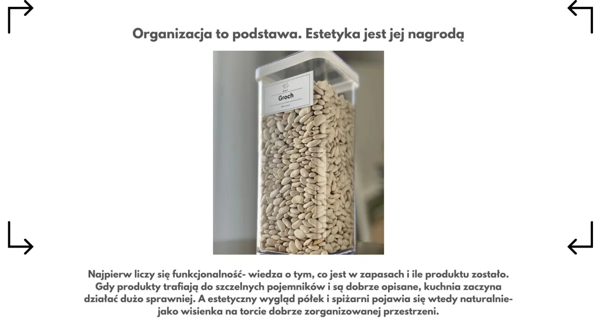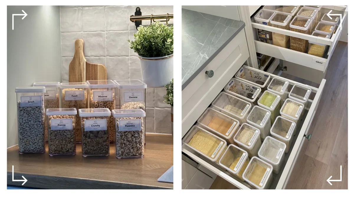 Porządek w kuchni nie zawsze wymaga wielkiej reorganizacji. Czasem wystarczy kilka szczelnych pojemników i dobrze opisane etykiety, żeby zobaczyć ogromną różnicę.