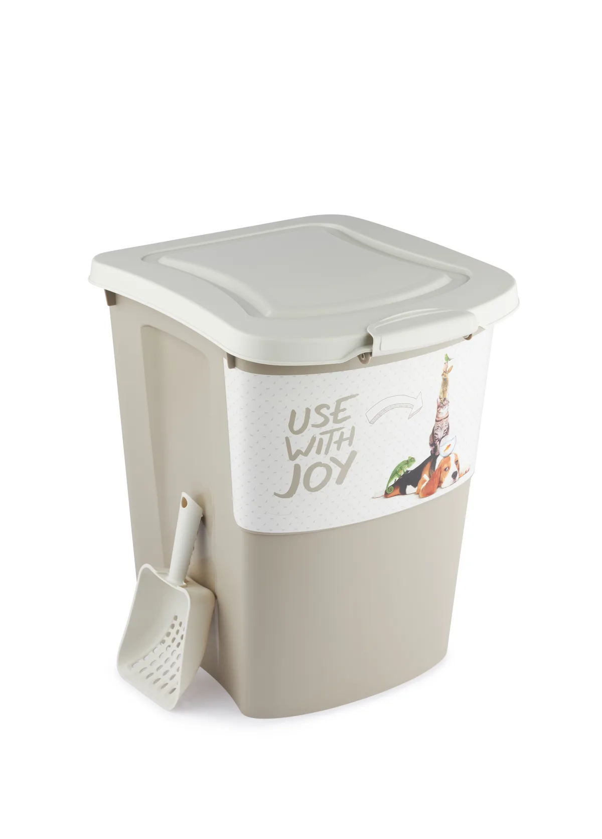 Łopatka dołączona do pojemnika będzie dodatkowym udogodnieniem przy odmierzaniu konkretnych ilości pożywienia.