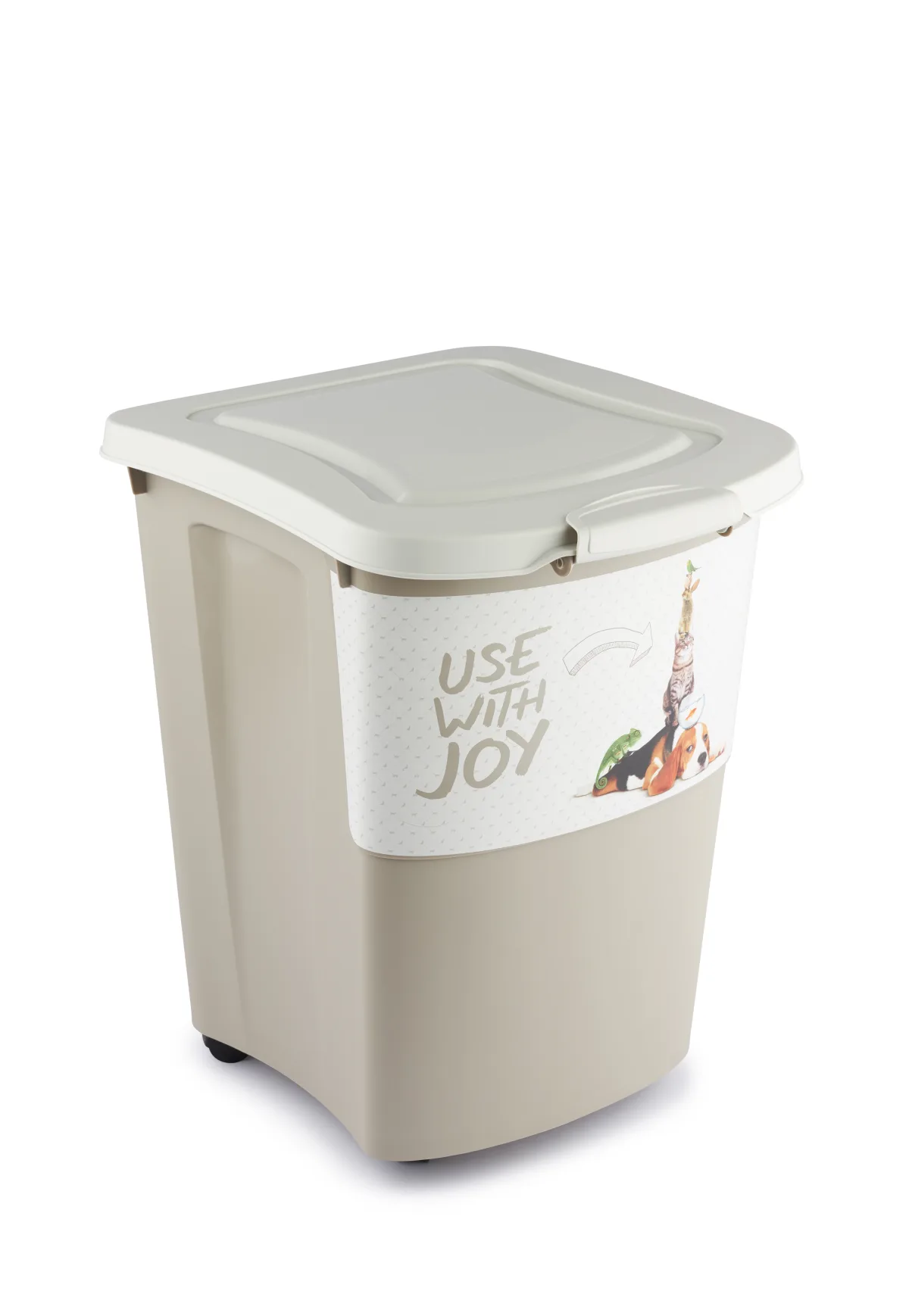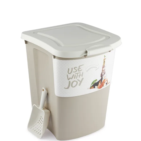Pojemnik przeznaczony do przechowywania suchej karmy o pojemności 38L lub max 18kg (uzależnione od granulacji oraz gęstości karmy).